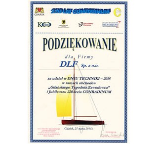 W marcu firma DLF Sp. z o.o. wzięła udział w Dniu Techniki – 2015 w ramach obchodów „Gdańskiego Tygodnia Zawodowca” i Jubileuszu 220-lecia CONRADINUM. Podczas Dnia Techniki uczestnikom prezentowane były nowoczesne rozwiązania i możliwości robota odkurzającego iRobot Roomba. Za udział w wydarzeniu firma Dlf Sp. z .o.o. otrzymała oficjalne podziękowania od organizatora.